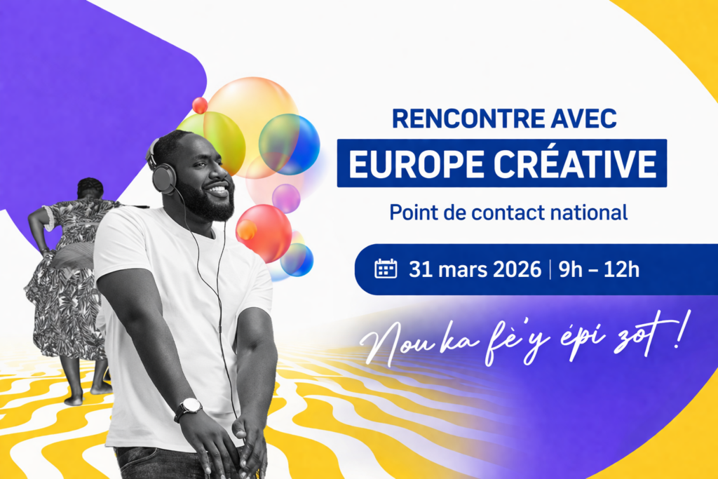 La Collectivité Territoriale de Martinique invite les professionnels de la culture, de la création et de l’audiovisuel à une rencontre exceptionnelle autour du programme européen Europe Créative, le mardi 31 mars 2026, de 9h à 12h, à la salle Maurice Nicolas – Hôtel de l’Assemblée à Fort-de-France.