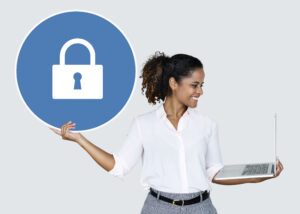 femme-tenue-cadenas-ordinateur-portable